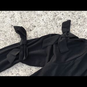 Gorgeous black waterfall front cardigan with slit sleeves and bows down them