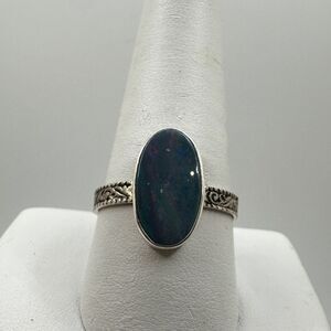 This is roughly a 8x16mm Australian Opal, all set in Bali sterling silver. The ring is marked 925 on back of the opal.