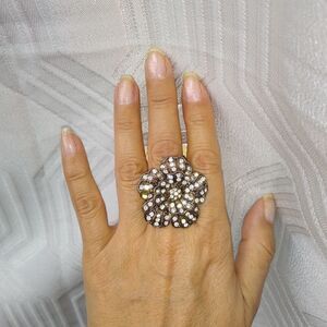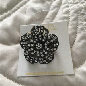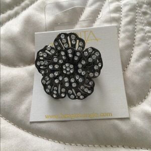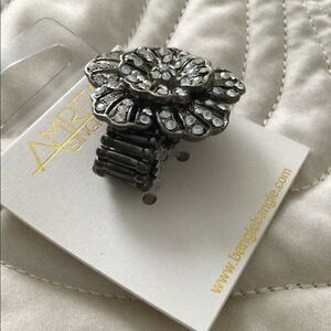 NWT Amrita Sing cocktail stretch ring, Gunmetal black. Glam, wedding, party, fashion jewelry. One size fits most, 1.5” x 1.5”.