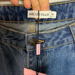NWT Avec Les Filles Distressed High Rise Raw Hem Slit Jean