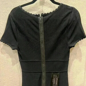 NWT-BCBGMaxAzria Bodycon Black Midi Dress Scalloped- Size Medium