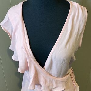 NWT BCBGMaxazria Small Tunic Top Asymmetrical Wrap Sheer Pink Ruffle
