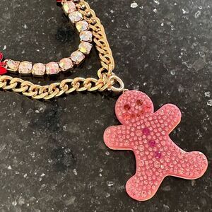 NWT BETSEY JOHNSON Pink Multi Glitter Rhinestone Gingerbread Ornament Necklace