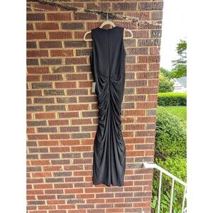 NWT*BETSY & ADAM WRAP GOWN DRESS-RUCHING-FRONT SLIT RUFFLE-V-NECK-BLACK-SZ 10