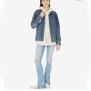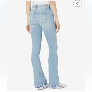 The Blank NYCT™ Hoyt Mini Boot Denim Jeans with Ripped Knees and Side Slit Released Hem in Blue. SIZE 25 BRAND NEW WITH TAGS