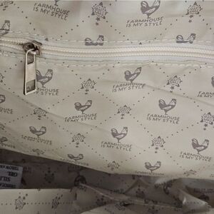 NWT, Burgundy roses tote. It is done on a cream background with burgundy and pink roses with tiny lavender flower accents.