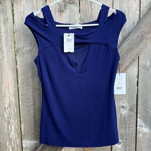 New with tags; Soft and stretchy rayon/spandex (mesh panel is nylon/spandex); cutouts; self lined; **