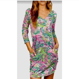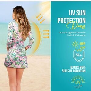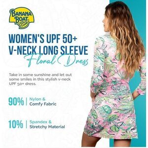 NWT Banana Boat UPF 50+ Women's V-Neck Printed Long Sleeve Dress UV Sun Protection Floral Dress
