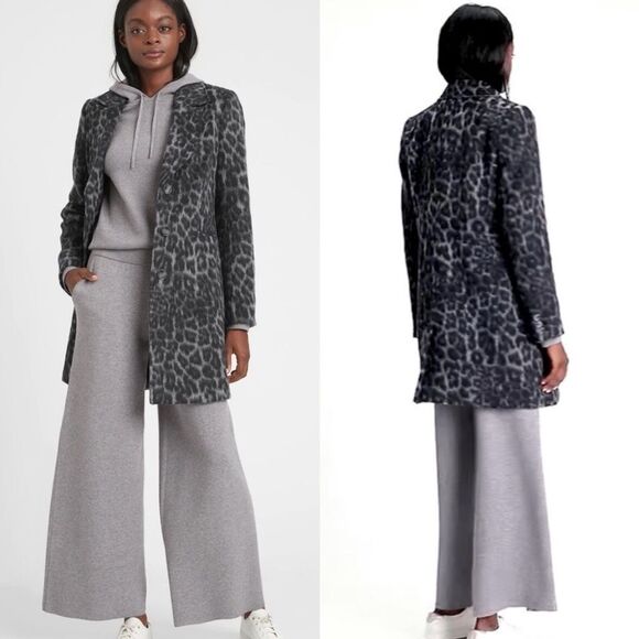 NWT Banana Republic Coat Wool Cotton Grey Animal Print Size S