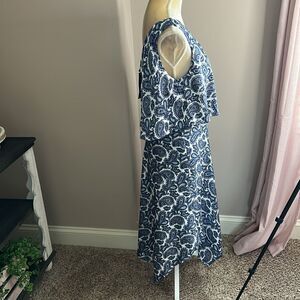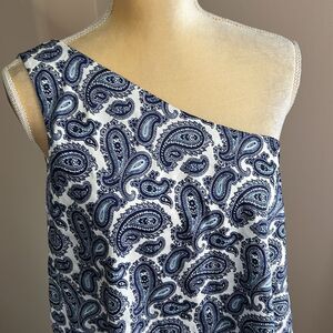 Brand new with tags, blue and white paisley pattern. Fully lined. Side zipper. Comes from a smoke free home
