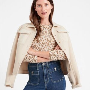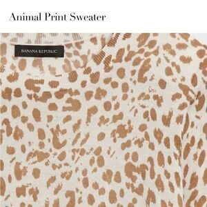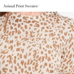 Leopard print fine merino wool sweater. Adds soft warmth without the weight. Ribbed cuffs and neck, machine washable. Ivory and tan. NEW WITH TAGS