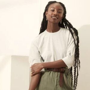 Light grey heather lightweight sweatshirt with elbow length sleeves. So laid back and comfy with a little stretch.