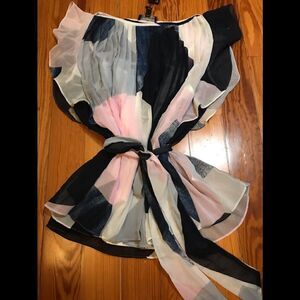 New with tags. Flattering fit. Flutter sleeves with tie in front. There is a “built in” tank to prevent transparency. Size XS