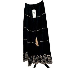 NWT Barok Paris by Anthropology super soft, embroidered, elastic waist, ruffle skirt. Beautiful detail and tassels.