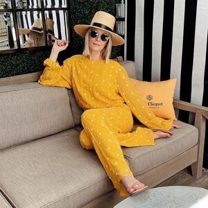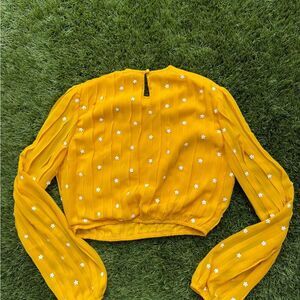 Chic yellow blouse with floral accents. Long sleeves and elegant design. Perfect for any occasion.