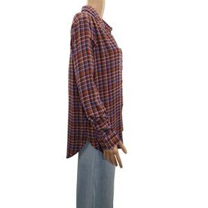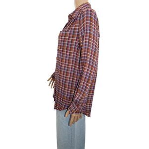 NWTBeachLunchLounge Plaid Button-Front Tunic Top Rust Multicolor Size Small