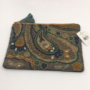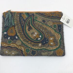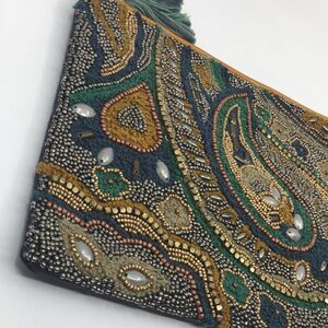 NWT Beaded Boho Paisley Embellished Clutch Pouch