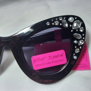 NWT Betsey Johnson Oversized Black Cat Eye Sunglasses With Crystals and Pearls