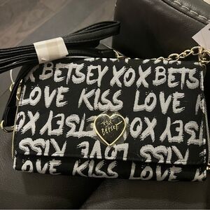 NWT Betsey Johnson black white XOXO LOVE KISS Crossbody shoulder accordion bag