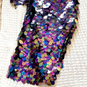 NWT sequin set! Unique and sexy, oversized sequin. Crop top with adjustable straps, SZ L. Skirt is midi length, SZ 6 with zipper back. Items can be worn together or separately. Can sell separately as well.