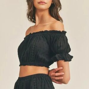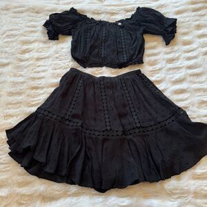 NWT Black Eyelet Off the Shoulder Crop Top & Skirt Set