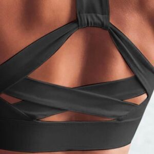 NWT Black Athletic Push Up Sports Bra Small Strappy Workout
