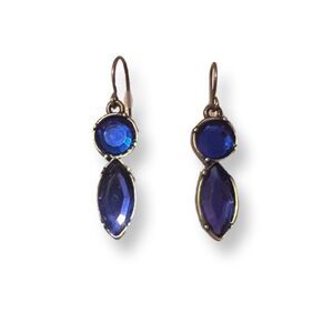 Gorgeous necklace and earrings set. Statement necklace with blue, purple, and clear rhinestones on a gold tone chain. The earrings has blue and purple rhinestones. The earrings are 1” long. The necklace is 16.25” long with an 3” extender.