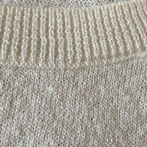NWT Bonpoint Girls Pullover Short Sleeve Sweater. White with Iridescent Sheen.