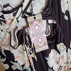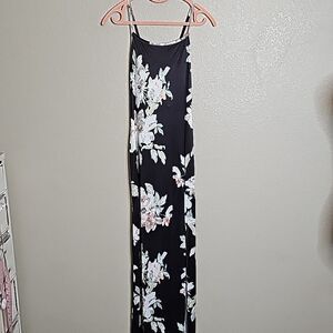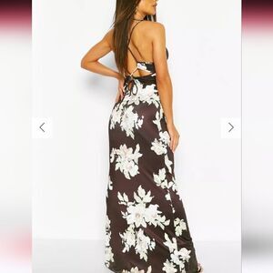 NWT Boohoo 8 Black Floral Back detail maxi dress in excellent new condition, leg slit, strappy adjustable back ties
