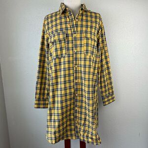 Great extra long flannel/plaid style button down shirt by Boohoo. It measures 25 inches armpit to armpit laying flat and is 36 inches in length from shoulder to hem.