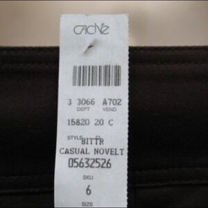 CACHE Stretch Sateen Cotton Cropped Pants, Size 6, New with Tags Details: Cache Size: 6 Color: Dark Brown Gold tone hardware Double button/zip front closure 2 1/2 inch waistband 2 rear faux pockets 97% Cotton/3% Spandex Dry Clean Only Measurements: Waist: 30" Hips: 38" Inseam: 23"
