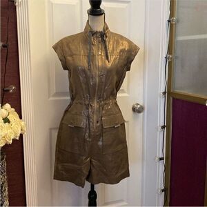 NWT Brunello Cucinelli 100% linen Shimmering Gold/ brown romper, S
