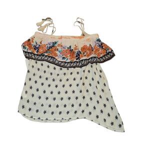 Dress it up or keep it casual. This cold shoulder, spaghetti strap tank by Coco+Jaimeson is comfortable, stylish and new, never worn. Elasticized woven printed top Adjustable tie shoulder or tuck straps in to make strapless/tube top 100% Rayon.