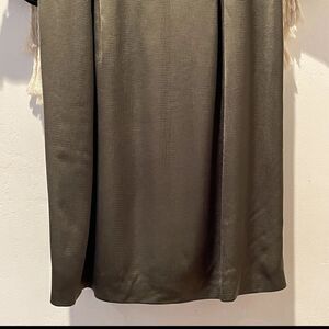 Details: Ribbed, Pleated, Long Sleeve, Sleeve Buckles, Back Zipper, Empire Waist, Dry Clean Only
