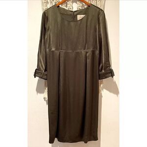 NWT Burberry Boxy Midi Dress SZ 8 Ribbed Olive Green Long Sleeve Holiday Party