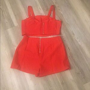 Brand new with tags attached by Blue Blush and offered by Forever 21. Features a cami too and Skort. Done in 95% polyester and 5% spandex. Tomato Red in color and size Juniors Large. Will fit bust 38-39”; Waist 30-31”; and Hips 42-44”. So cute!