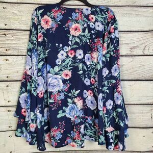 NWT C Brand Women’s 1X Navy Blue Floral Boho Blouse Bell Sleeve Tie Front Plus S