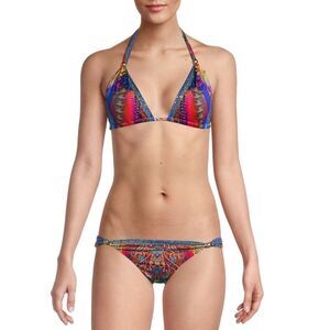 Updating a traditional triangle style with its colourful print, the Ball Psychedelica bikini from Camilla is sure to stand out in a crowd of neutrals. Featuring an adjustable tie closure and a kaleidoscope of colours, this two-piece is sure to become a regular favourite wherever your warm weather adventures take you.