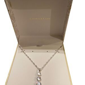 NWT CHARTER CLUB Triple Crystal Pendant Necklace in Fine Silver Plate