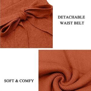 Features: Pullover style,detachable waist belt,with v design in front and back,batwing long sleeve,solid color, slim fit knitted sweater dress.