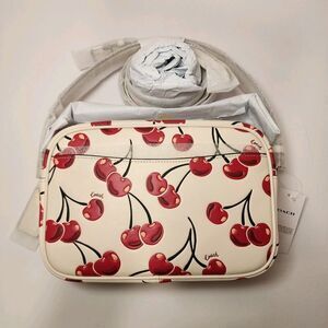 NWT COACH CZ189 Jamie Camera Bag With Cherry Print In Smooth Leather Chalk Multi