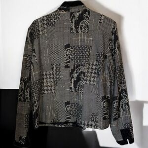 This elegant gray jacket features a sophisticated pattern, perfect for adding a touch of class to any outfit. Ideal for both casual and formal occasions.