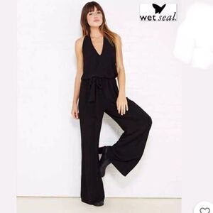 NWT CONTEMPO Black Halter Flare Wide Leg Jumpsuit