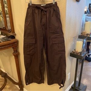 Brand new with tag. Women or teens brown Summer Cargo baggy wide leg pants. Stretchy elastic waistband. Comes from smoke and pet free home.