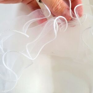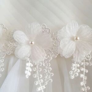 Tulle and lace. Flowers and pearls. Perfect for a holiday or big event! 100% Polyester Zipper in the back. Chest:12" from armpit to armpit. Waist:12" from side to side. Length:20" from the armpit down. Smoke-free, pet-free home.
