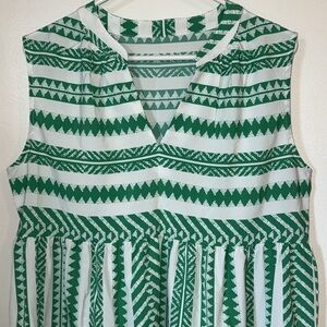 Embrace summer vibes with this stylish green patterned sleeveless dress. Perfect for casual outings and beach days.