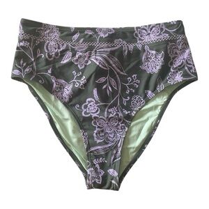 Gorgeous two piece swimsuit, size medium, top is a scoop neck with padding, back hook, wide adjustable straps, armpit to armpit 17-19 inches