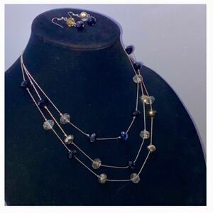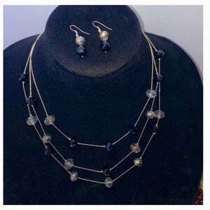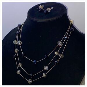 NWT Cake Brand Sparkling Glass Beaded Necklace with Matching Earrings Necklace 16” 3rd strand hangs to 20” Earrings 1.5”