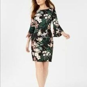 NWT Calvin Klein black with Floral 3/4 Bell Sleeve Sheath Dress Size 22W