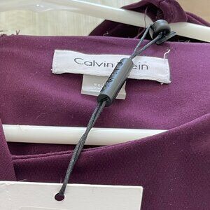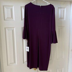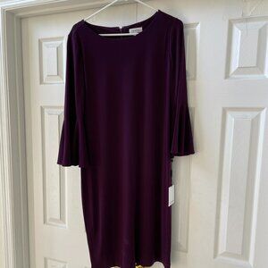 NWT--Calvin Klein knee length aubergine or plum sheath dress, size 12 with bell/flared sleeves. $99 retail from calvinklein.com.